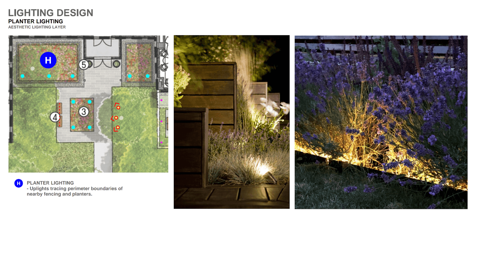 The Aesthetic Layer: To celebrate our property’s greatest asset, carefully placed uplights will reveal the structure of our mature trees and highlight hedges and low walls. This creates a memorable nighttime identity visible from both the sidewalk and the apartments above.